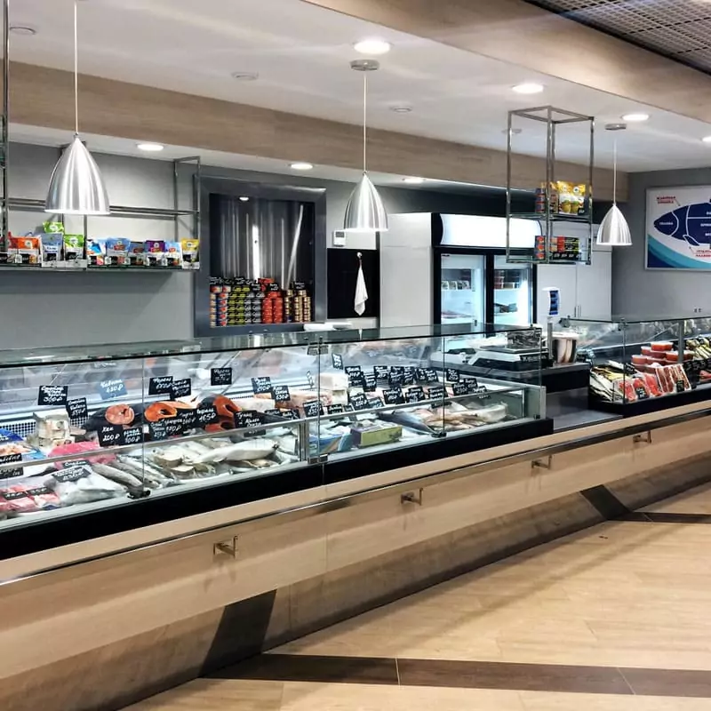 - огромный выбор разнообразной речной и морской рыбы, морепродуктов, а также мяса, мясной продукции и деликатесов;